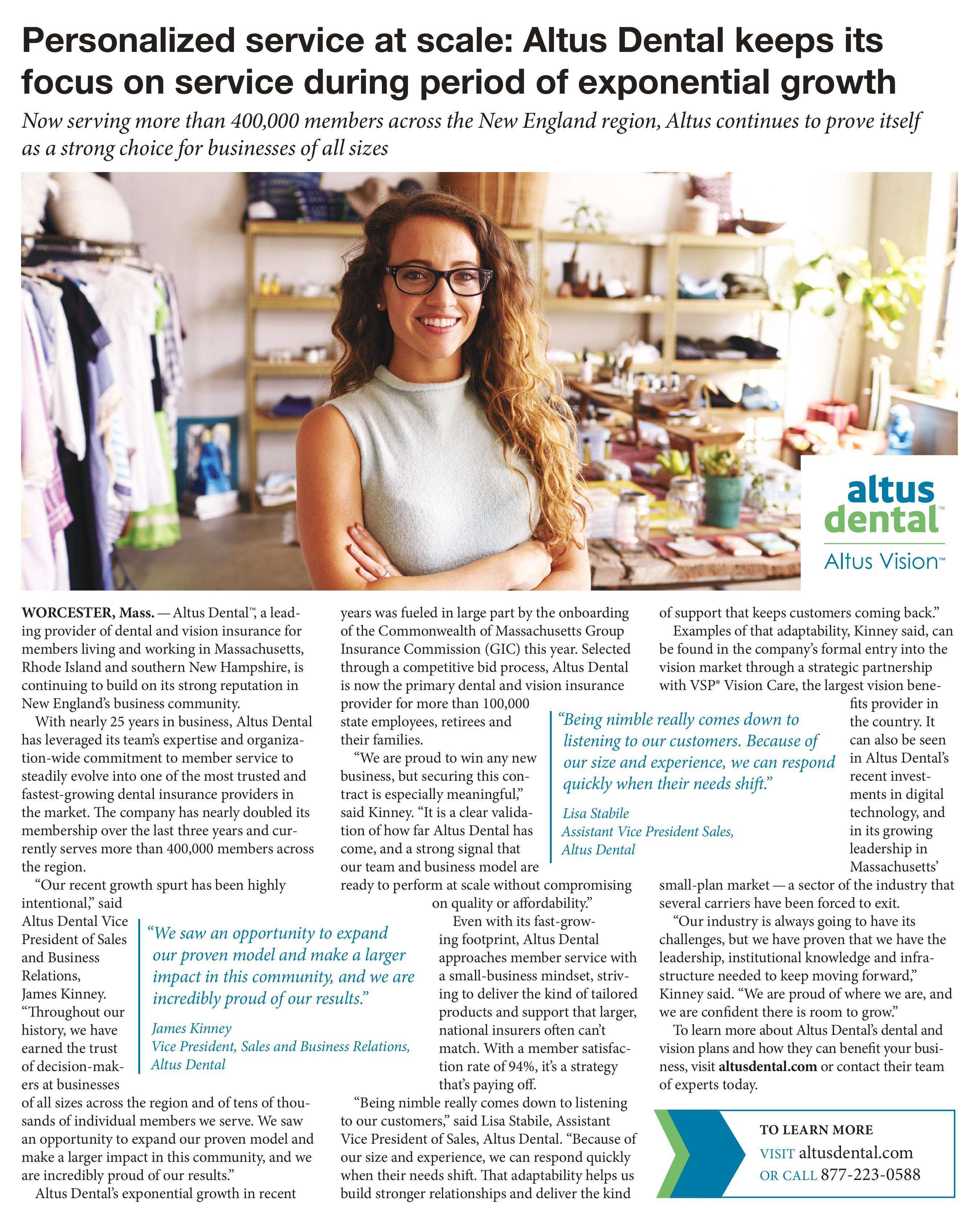 This year marks 25 years in business for Altus Dental™, a dental and vision benefits provider serving more than 400,000 members across Massachusetts and the surrounding New England region.